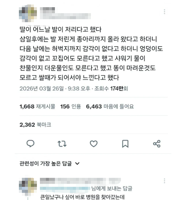 딸이 어느날 발이 저리다고 했다.