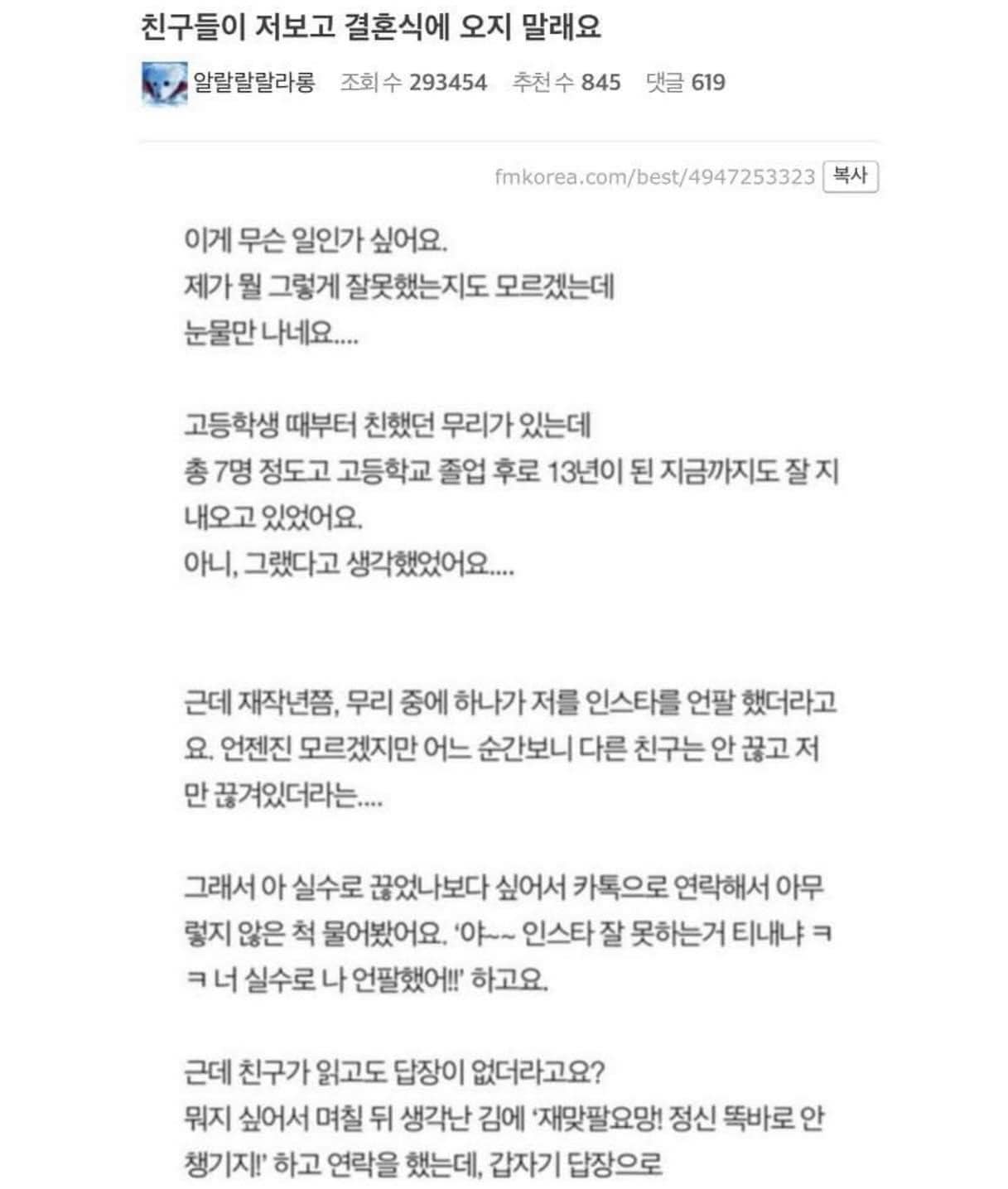 친구들이 저보고 결혼식에 오지 말래요..