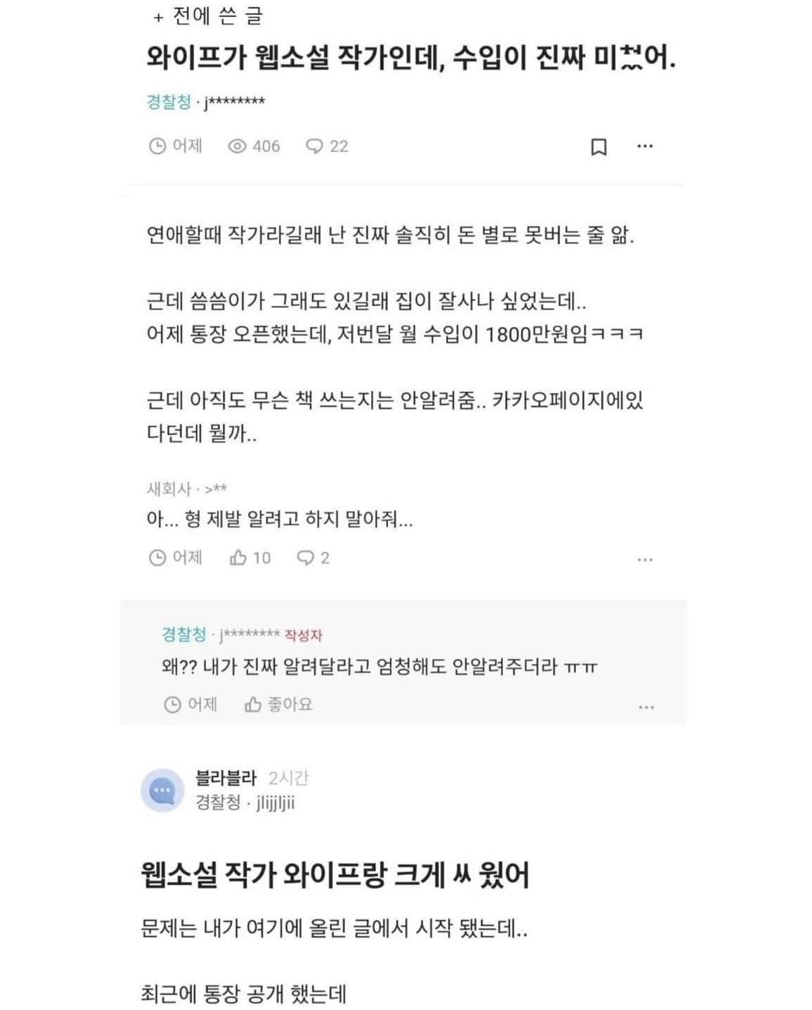 수상할 정도로 수입이 많은 와이프의 정체..