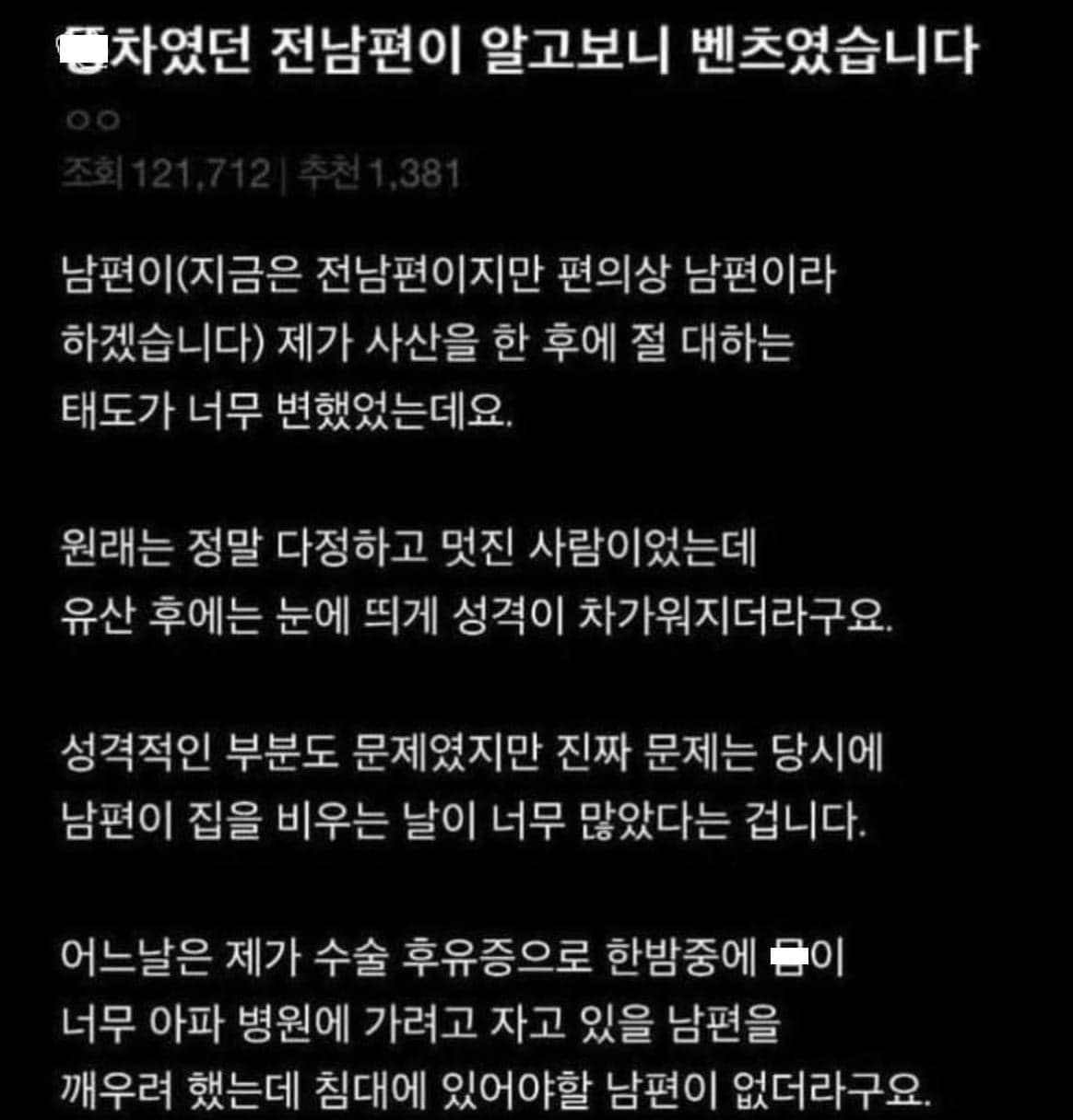 똥차였던 전남편.. 알고보니 벤츠였네요..