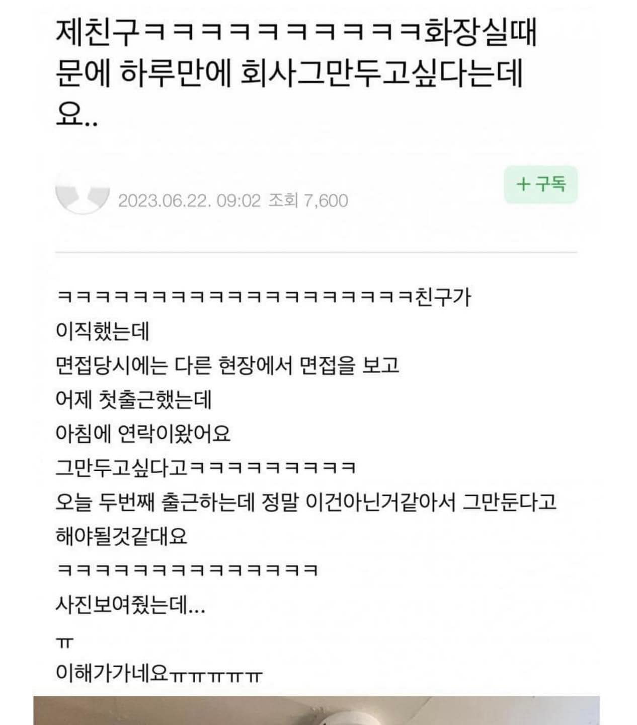 친구가 화장실 때문에 하루 만에 회사 그만두고 싶다는데...