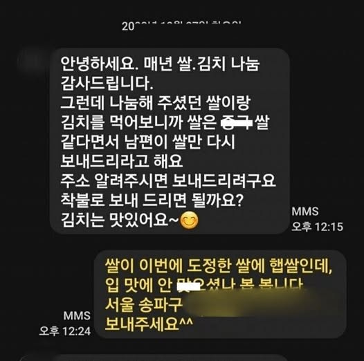 ㅈ국산 쌀 같아서 반송하려구요 ...(+답장 ㄷㄷ)