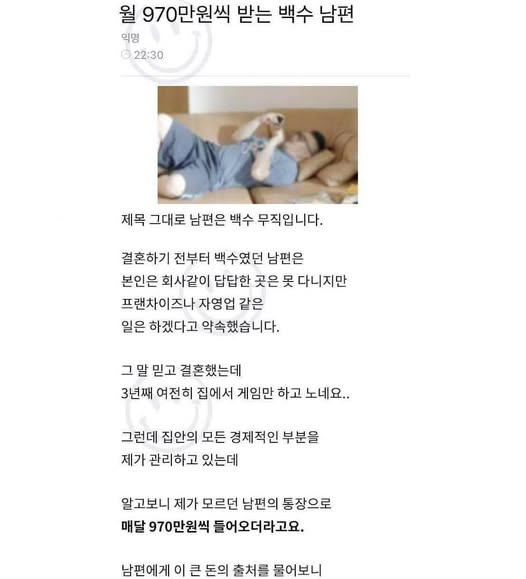 백수 남편이 월 970만원씩 버는 방법..ㄷㄷ