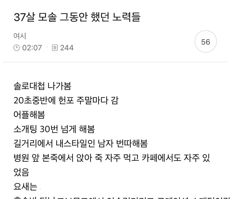 37살 모솔 여시 그동안 했던 노력들