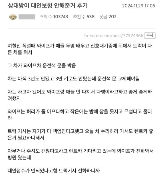 상대방이 대인보험 안해준거 후기