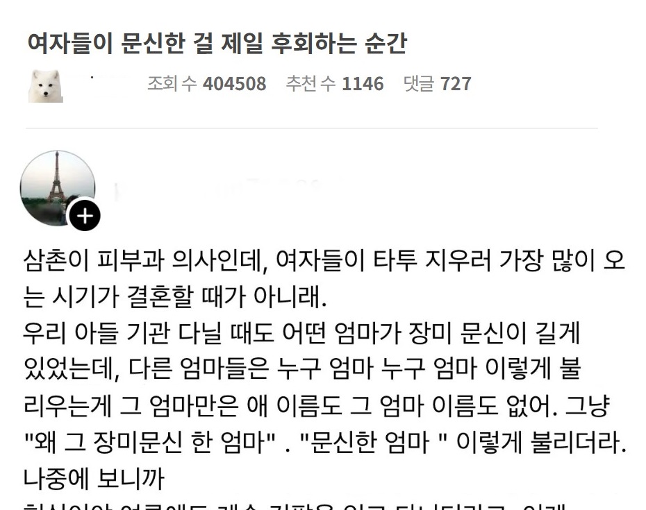 여자들이 문신한 걸 제일 후회하는 순간