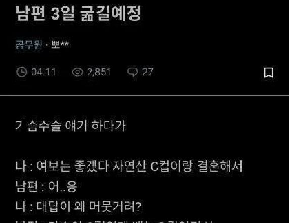 남편 3일 굶길 예정인 C컵 와이프