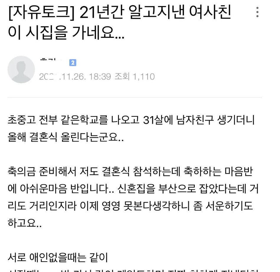 21년지기 여사친을 떠나보낸 남사친 ㄷㄷ