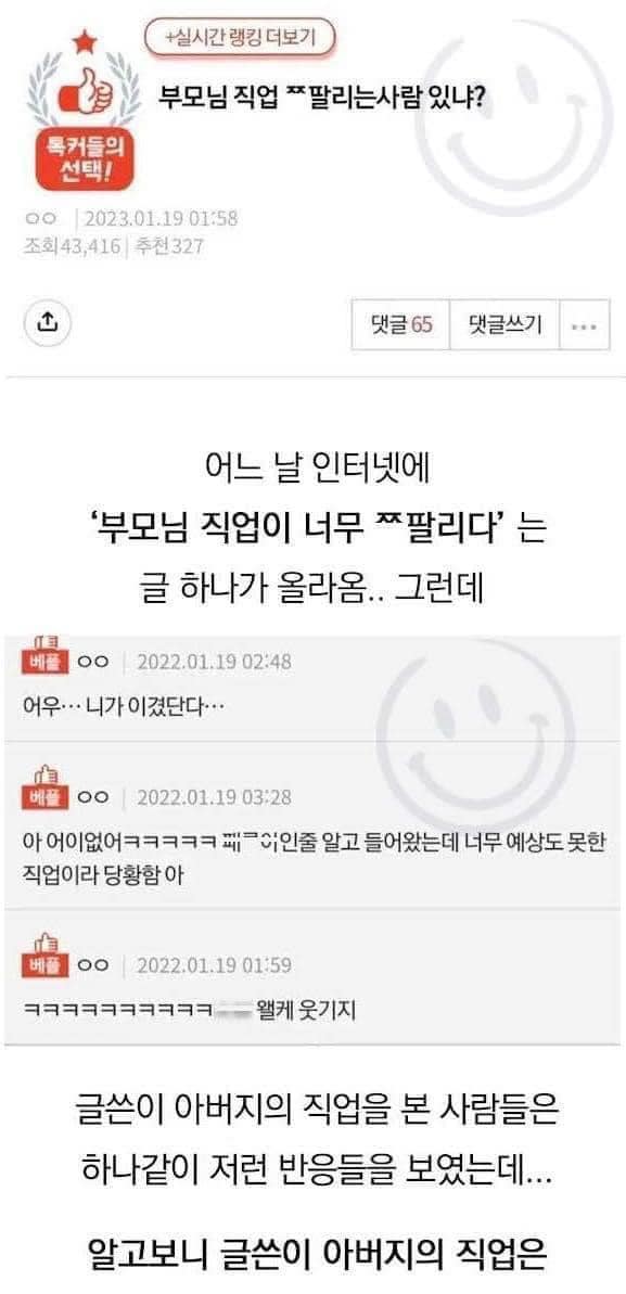 자식들이 창ㅍ해하는 부모님 직업 1순위..