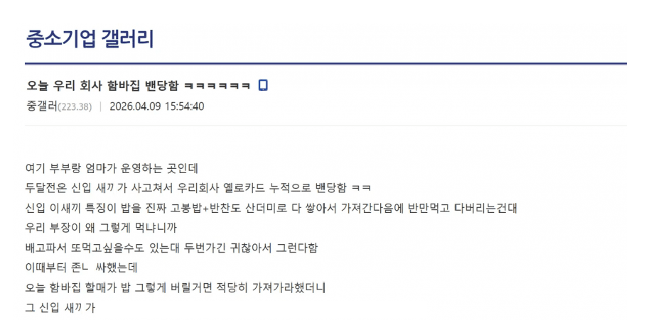 신입직원은 모르는 메뉴