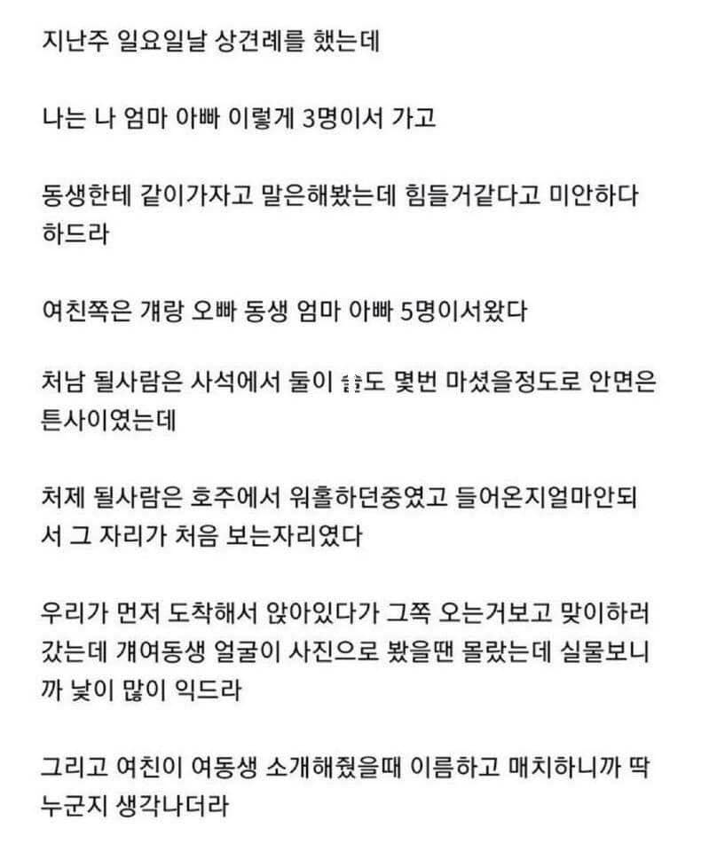 예비처제 보고 파혼했다..