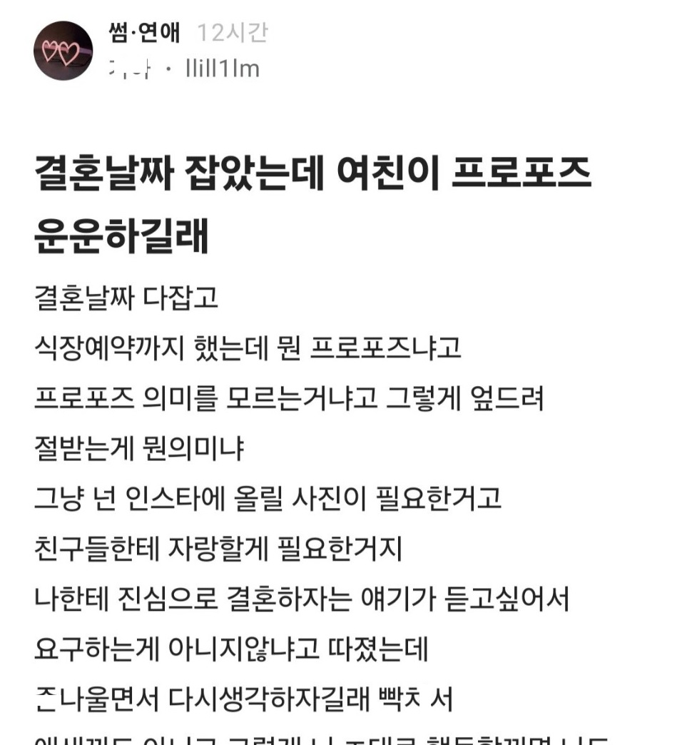 여친한테 프로포즈 안해줘서 파혼한 블라남