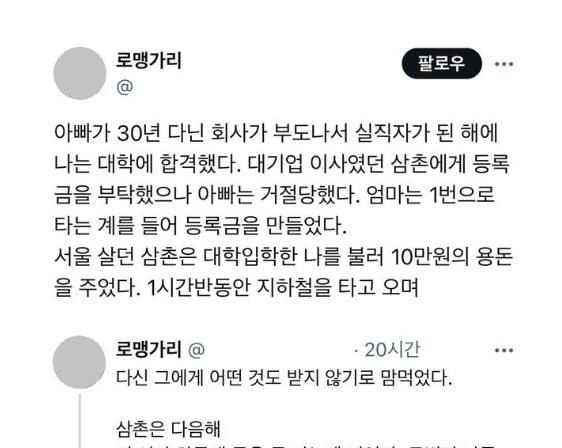 삼촌에게 등록금을 부탁했으나 아빠는 거절당했다