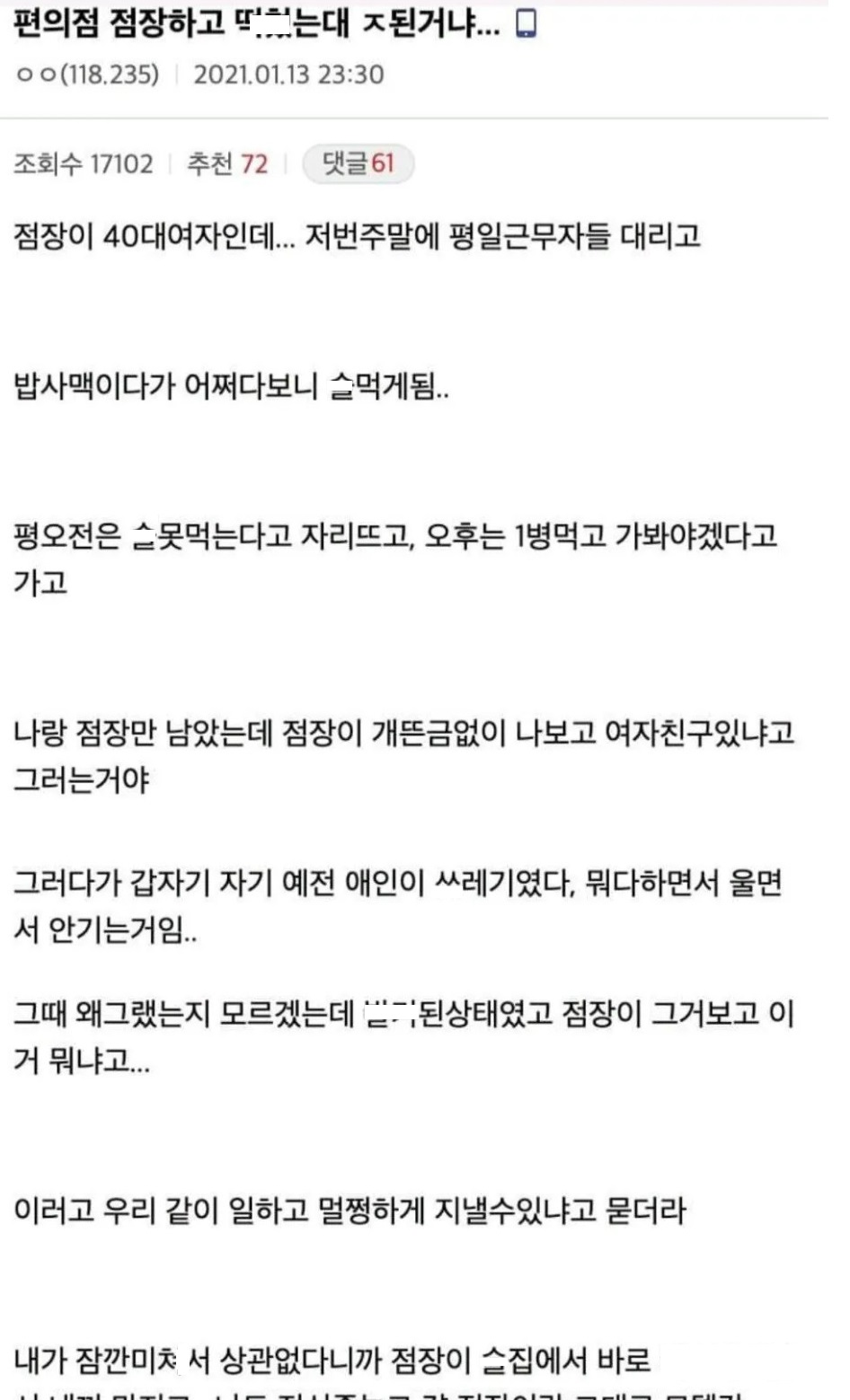 편의점 40대 여점장과 한타한 알바생 후기.jpg