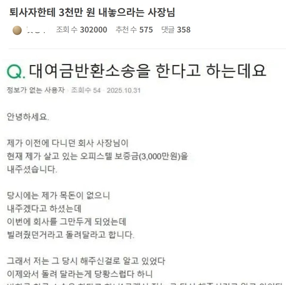 퇴사자한테 3천만 원 내놓으라는 사장님