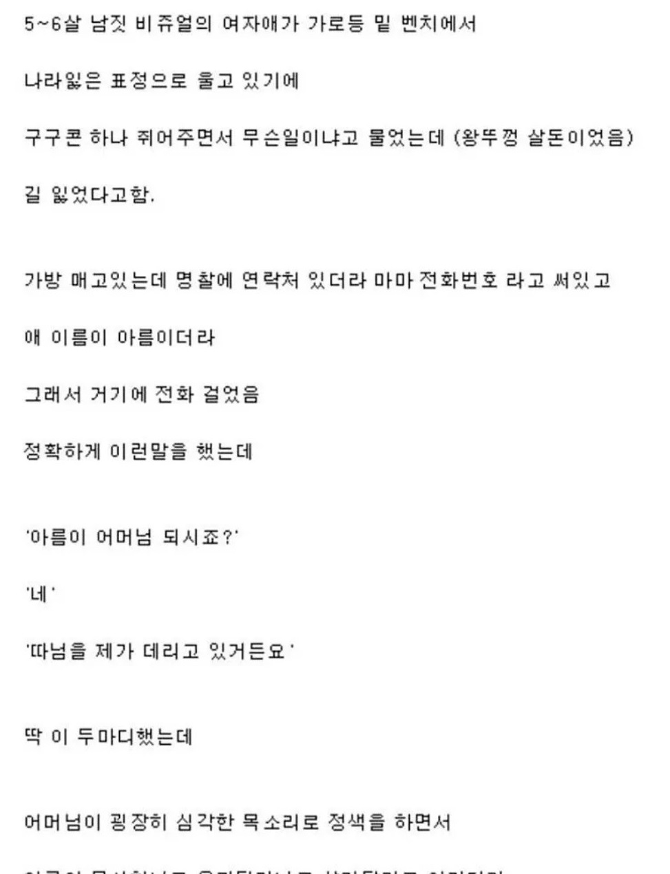 "아름이 어머님 되시죠? 따님을 제가 데리고 있거든요."jpg