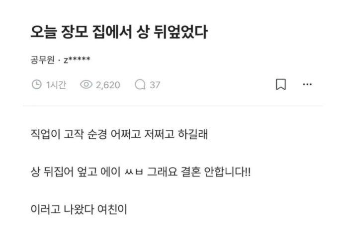 오늘 장모 집에서 상 뒤엎었다.