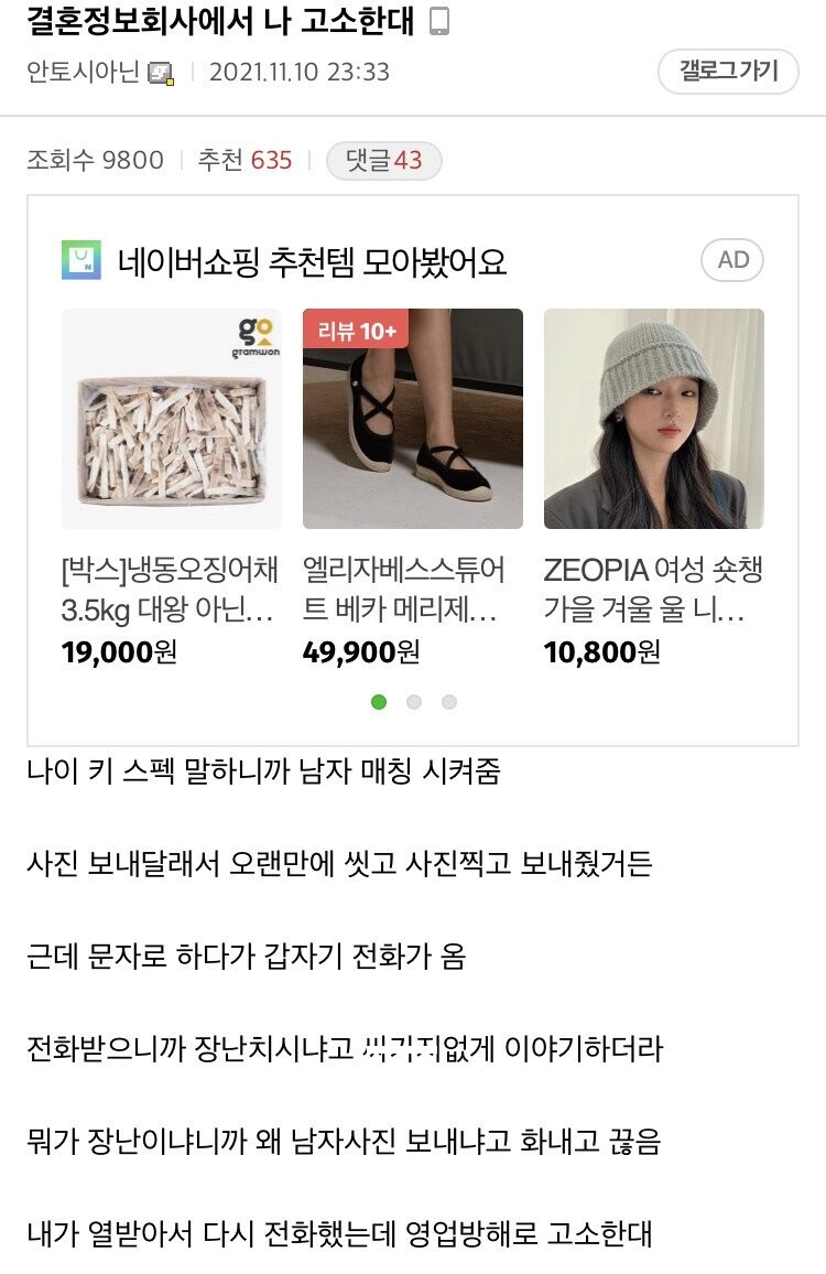 결혼정보회사에서 날 고ㅅ한대