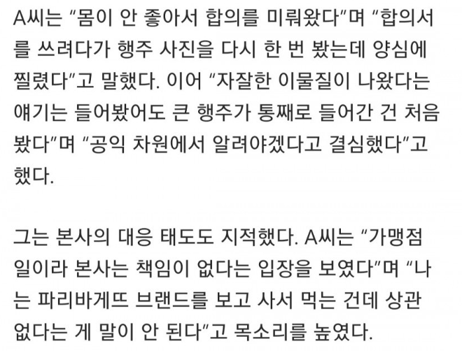 파리바게트 행주 합의금 금액..ㄷㄷ