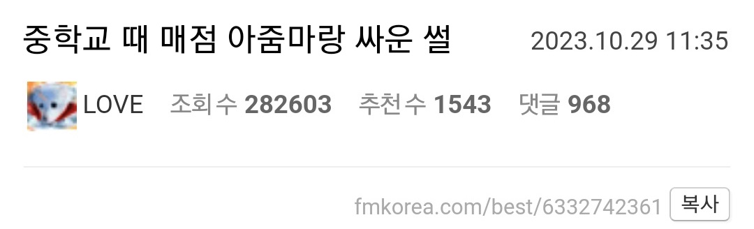 중학교 때 매점 아줌마랑 싸운 썰