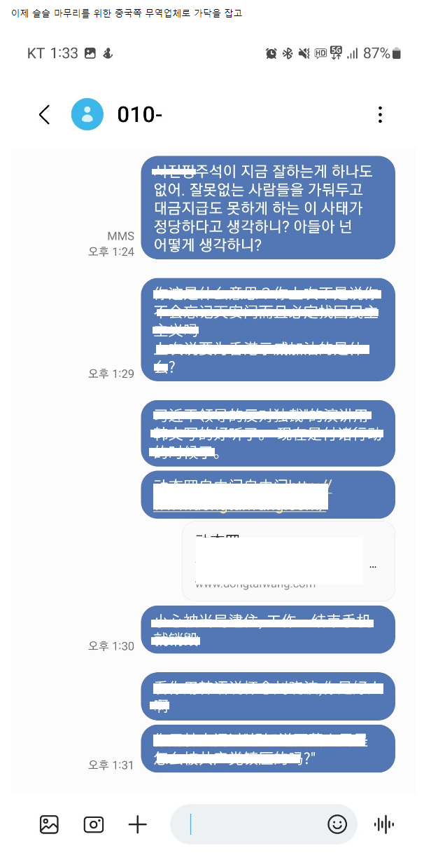 즐거운 추석을 보내라는 뜻인줄 알고 있는 펨코에서 배운 중국어 몇자 적어서 보내주니 아들로 부터 연락이 끊겼습니다...