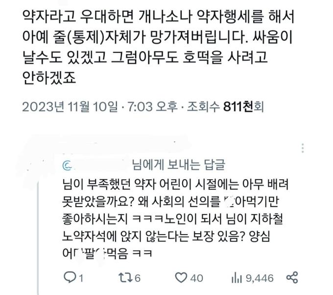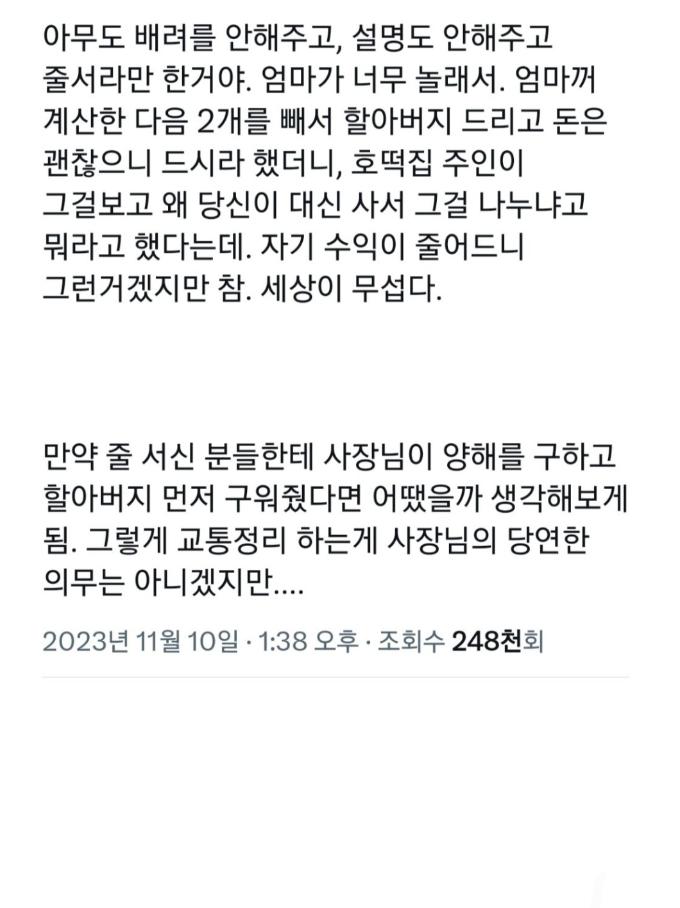 맹인에게 호떡줄서기 양보해줘야한다 vs 그럴필요없다