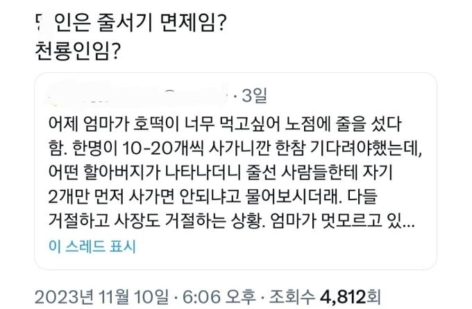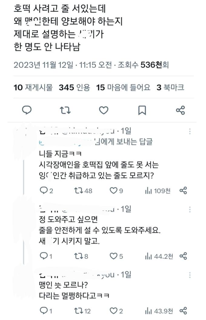 트위터에서 논란중인 호떡 사려다 본 시각장ㅇ인 (+댓글)