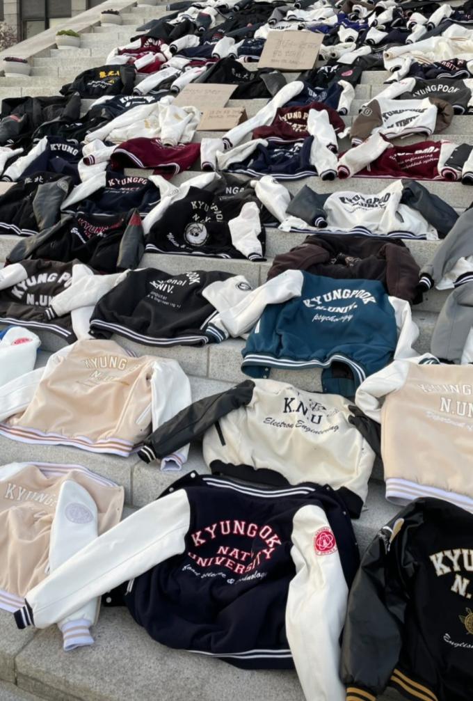 금오공대랑 통합 추진에 학생들이 과잠을 놓는 것로 반대 시위중